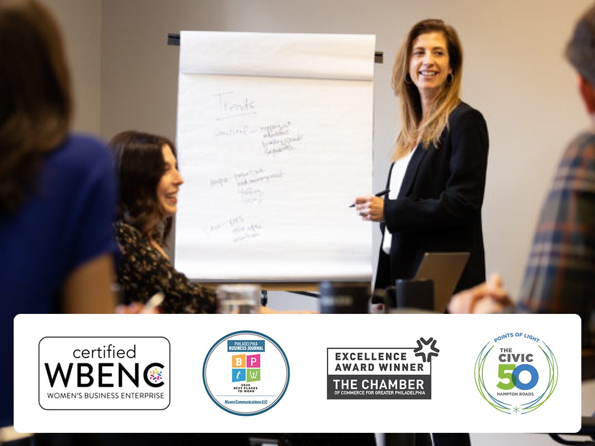 Giving back to the community is a big part of what gets us up and going every day. In addition to pro bono work that the firm does, we’re also proud of our Maven Gives Back volunteer program, where all employees are permitted to use as many work hours as they’d like to volunteer for a cause that is important to them. On average, the team at Maven volunteers over 300 hours per year. Maven has been recognized as one of the region’s 50 most community-minded companies by The Chamber of Commerce of Greater Philadelphia and Points of Light Foundation as a 2025 Civic 50 Greater Philadelphia honoree. In 2019, Maven was named a 2019 Corporate Philanthropy Award Winner by The Philadelphia Inquirer.